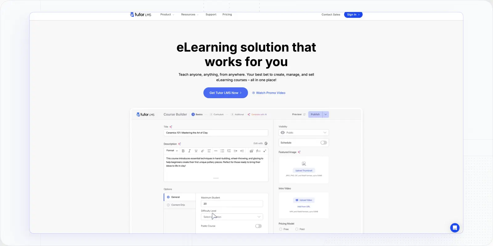 Tutor LMS also allows multiple instructors to contribute to a single course, and it includes built-in marketplace functionality for selling courses. Additionally, it provides various integrations, including options for social logins, and it's compatible with popular WordPress page builders like Elementor.