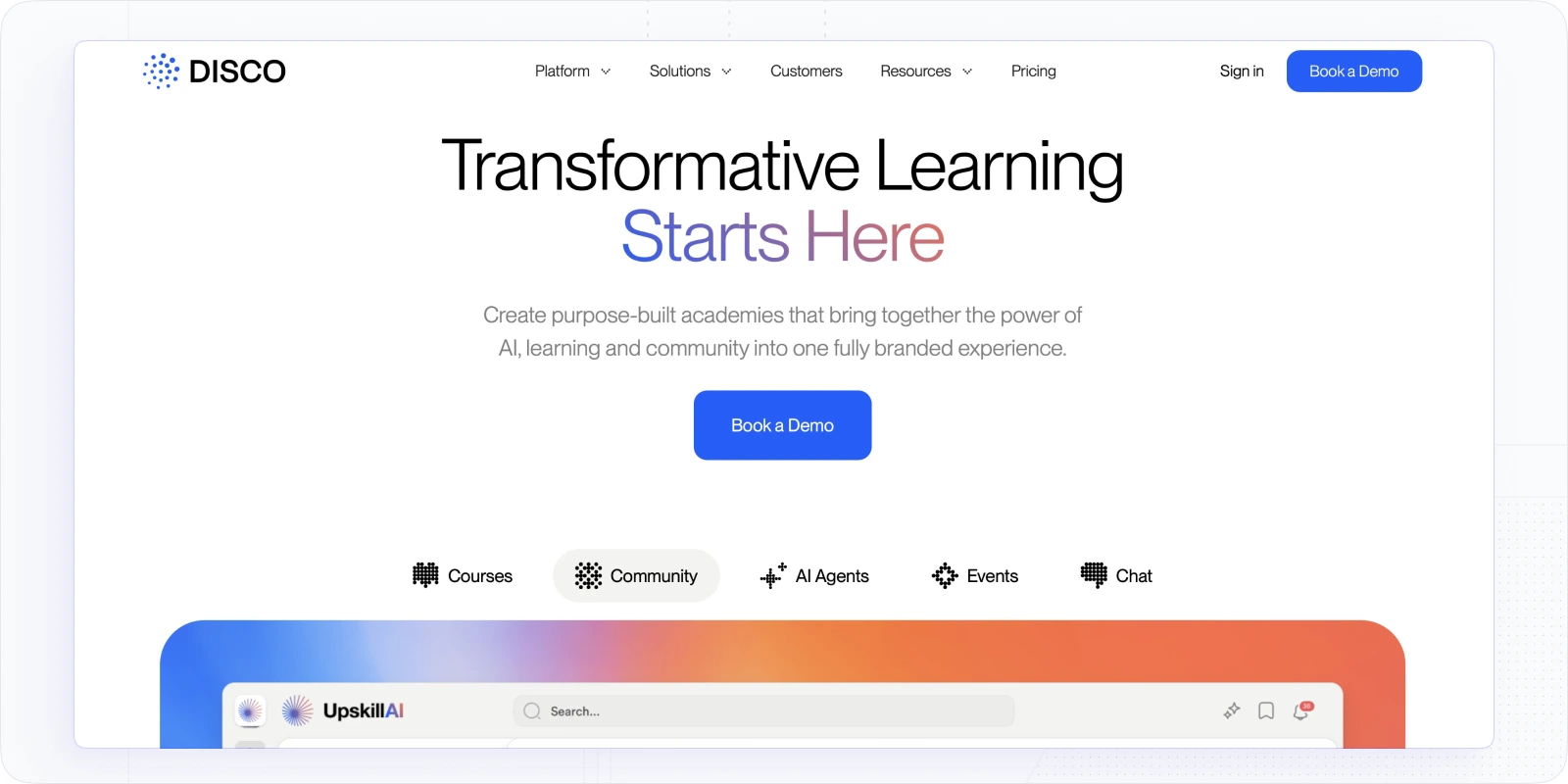 Disco’s AI co-pilot is a solid tool supporting content creation, onboarding, and operations. Plus, there are integrations with tools like Slack help extend learning into daily workflows. In the end, the platform’s community-driven structure makes it ideal for programs that rely on mentor support, discussion, and collaboration.
