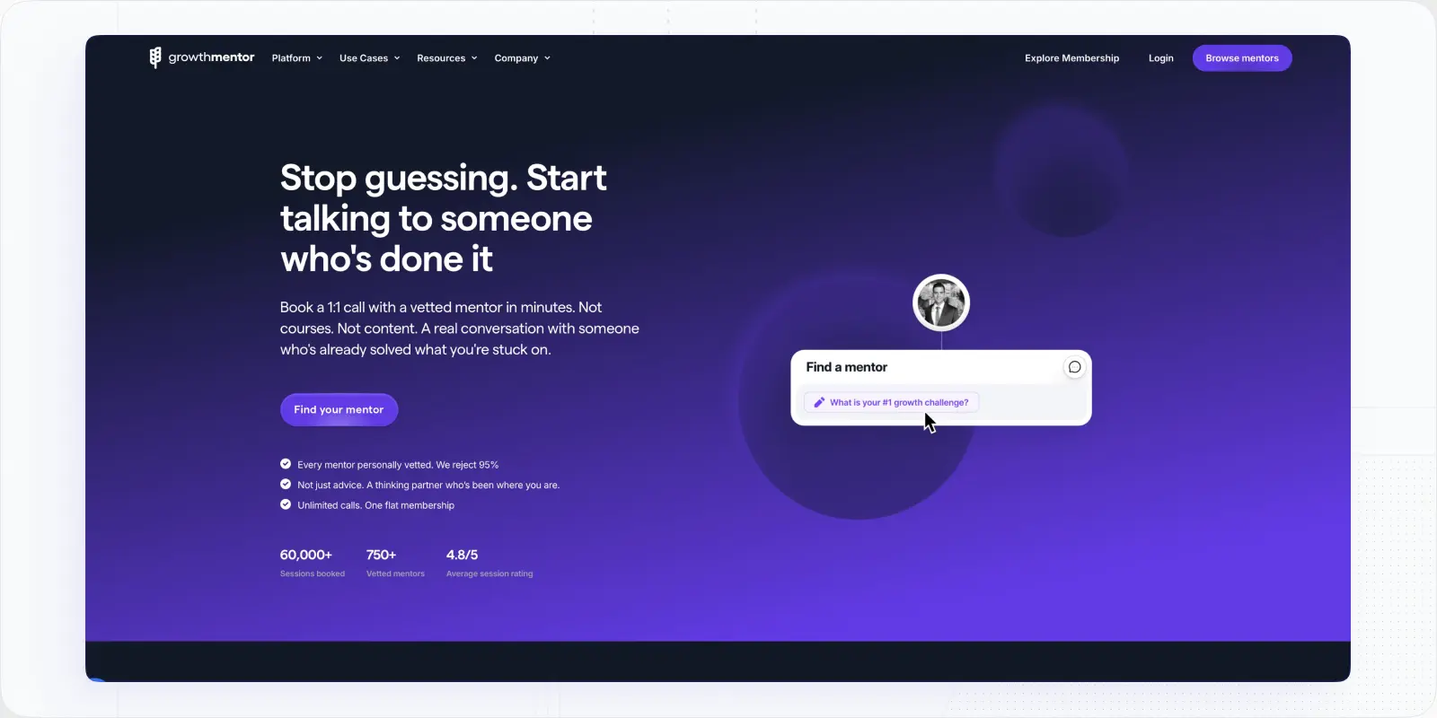 Best For: GrowthMentor is perfect for entrepreneurs and professionals seeking personalized guidance and mentorship to accelerate their personal and professional growth.