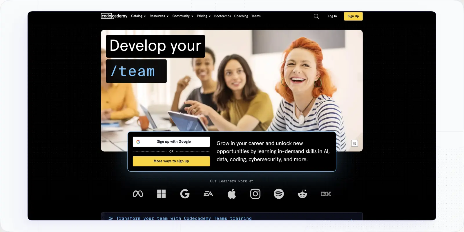 Codecademy is an online social learning site dedicated to teaching coding and computer science. The courses, created by industry experts, cover a wide range of sought-after technical skills and languages, such as Python, React, and SQL. Pricing varies for individuals, students, and teams.
